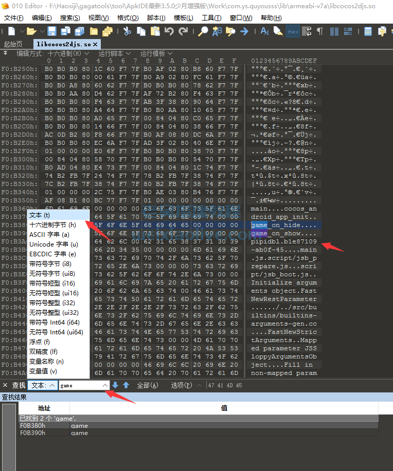 打开编译出来的文件夹,找到这个JSC密码文件。用010 editor二进制编辑器打开